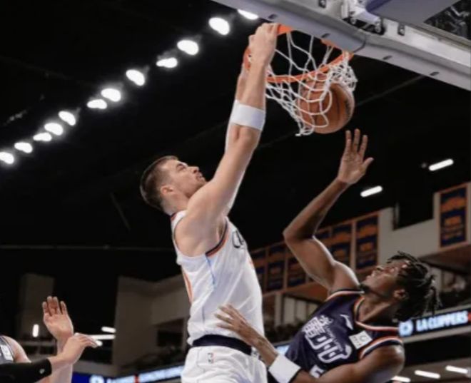 首节开打,弗雷泽弧顶接球,面对波格丹直接干拔三分强投命中,广州龙狮开局5-3领先快船。伦纳德接哈登传球,迎着李祥波三分线外一步稳稳命中,奥拉迪波同样位置接球三分手起刀落,立马还以颜色,两队打得有来有回。祖巴茨看准时机高高跃起,隔着李祥波完成单臂补扣,下回合篮下接球再送双手隔扣,‘祖尼尔’果然名不虚传,快船反超比分。