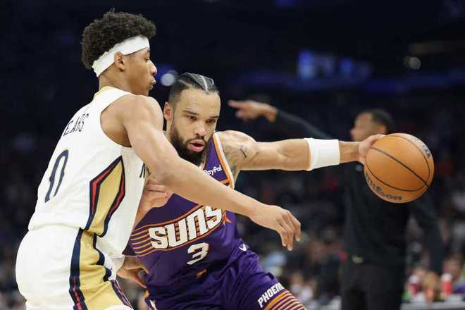 次节比赛,太阳进攻火力提升,且用出色的防守限制鹈鹕单节得分不足20分。阿伦第二节爆发命中4记三分得到15分,布克与奥尼尔也是接连得分,引领太阳单节35-19净胜16分,上半场结束太阳扩大64-41领先鹈鹕23分优势。前两节比赛,太阳已经命中11记三分,布克15分与阿伦4记三分18分,奥尼尔4记三分12分,鹈鹕2人得分上双。
