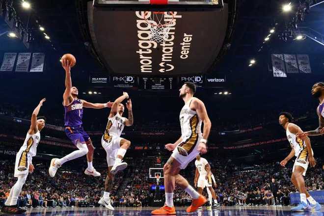 北京时间11月11日,NBA常规赛太阳主场对阵鹈鹕,太阳在阿伦大爆发狂轰10记三分得到42分创两项生涯新高纪录引领下,持续压制鹈鹕逐步扩大30+优势提前奠定胜局,最终太阳121-98战胜鹈鹕收获3连胜,鹈鹕新赛季2胜8负稳居西部倒数第一。