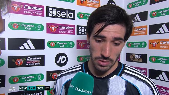 本赛季英联杯第4轮,纽卡斯尔主场2-0战胜热刺,纽卡中场托纳利接受了ITV Sport的赛后采访。