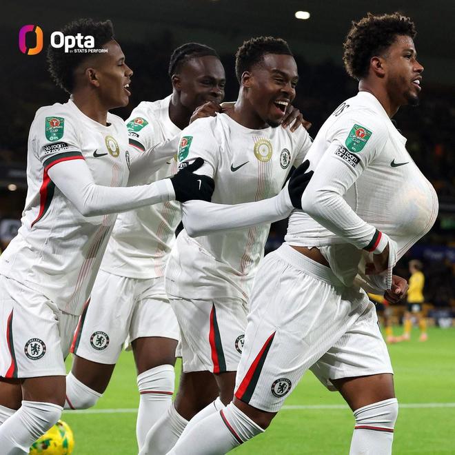 据统计,切尔西成为首支单场正式比赛有4名21岁或以下球员取得进球的英超球队。